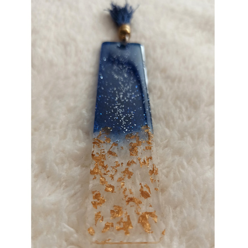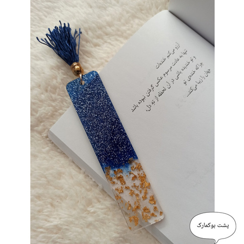 بوکمارک تمام رزینی ضد آب و کاملا دستساز میباشد.در اجرای آن از رزین اپوکسی , اکلیل , ورق طلا و همچنین رنگهای مخصوص رزین استفاده شده است.رزین اپوکسی یک ماده 2 جزیی متشکل از رزین و هاردنر است که بعد از ترکیب شدن با یکدیگر محصولی سخت , شفاف ( بی رنگ ) و شیشه ای و هم چنین ضد آب و ضد خش ساخته میشود.